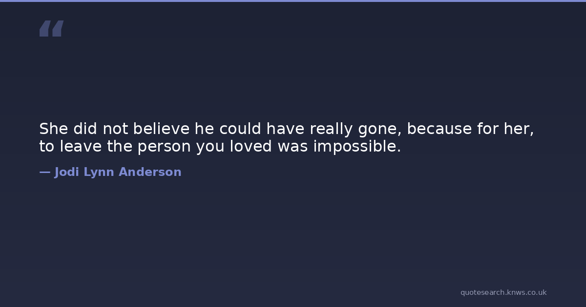 She did not believe he could have really gone, because for her, to leave the person you loved was impossible.