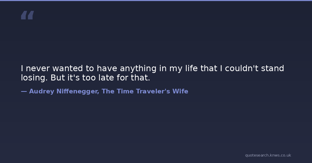 I never wanted to have anything in my life that I couldn't stand losing. But it's too late for that.