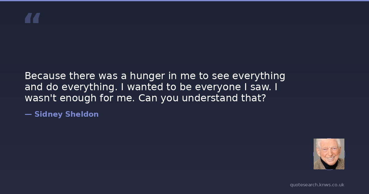 Because there was a hunger in me to see everything and do everything. I wanted to be everyone I saw. I wasn't enough for me. Can you understand that?
