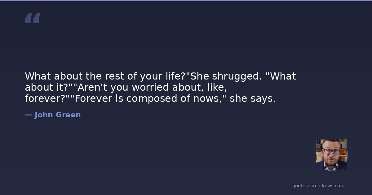 What about the rest of your life?"She shrugged. "What about it?""Aren't you worried about, like, forever?""Forever is composed of nows," she says.