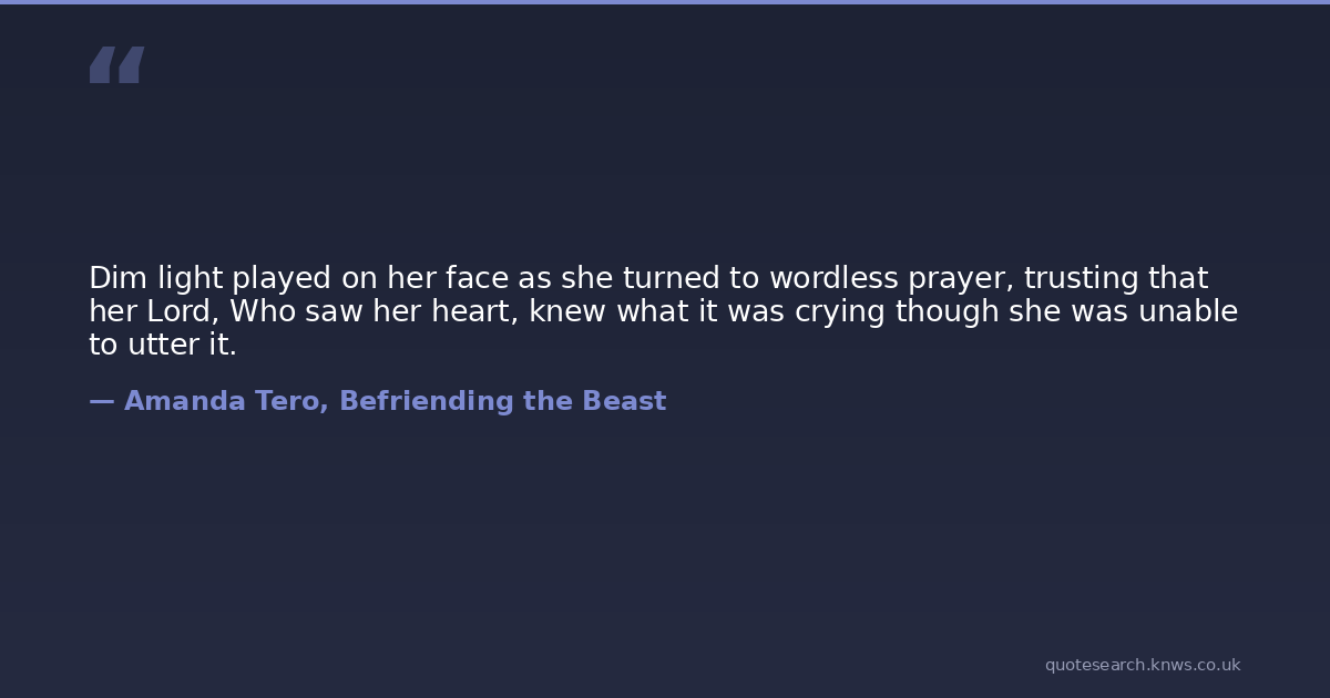 Dim light played on her face as she turned to wordless prayer, trusting that her Lord, Who saw her heart, knew what it was crying though she was unable to utter it.
