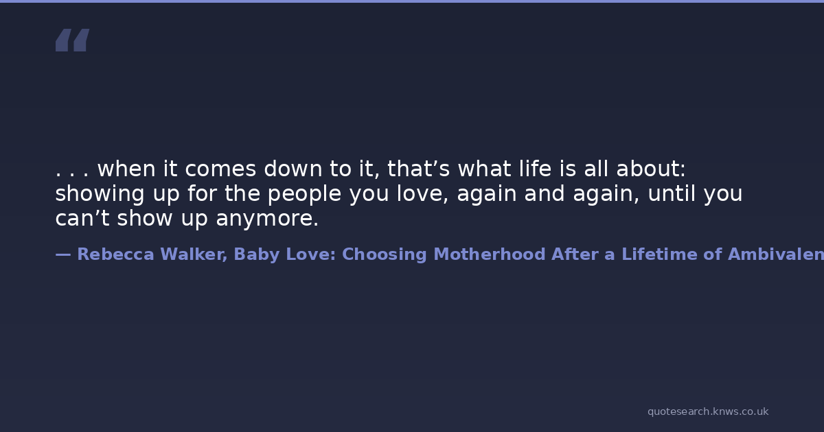 . . . when it comes down to it, that’s what life is all about: showing up for the people you love, again and again, until you can’t show up anymore.