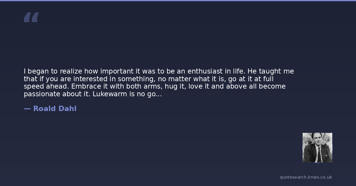 I began to realize how important it was to be an enthusiast in life. He taught me that if you are interested in something, no matter what it is, go at it at full speed ahead. Embrace it with both arms, hug it, love it and above all become passionate about it. Lukewarm is no good. Hot is no good either. White hot and passionate is the only thing to be.
