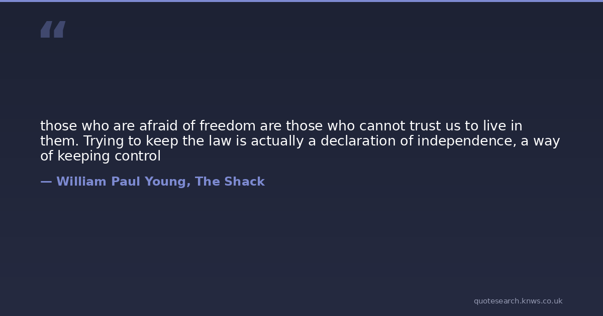 those who are afraid of freedom are those who cannot trust us to live in them. Trying to keep the law is actually a declaration of independence, a way of keeping control