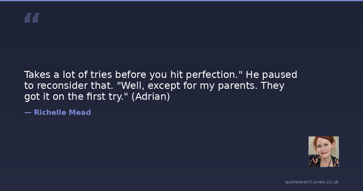 Takes a lot of tries before you hit perfection." He paused to reconsider that. "Well, except for my parents. They got it on the first try." (Adrian)