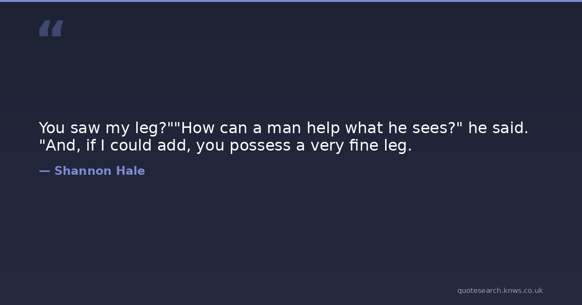 You saw my leg?""How can a man help what he sees?" he said. "And, if I could add, you possess a very fine leg.