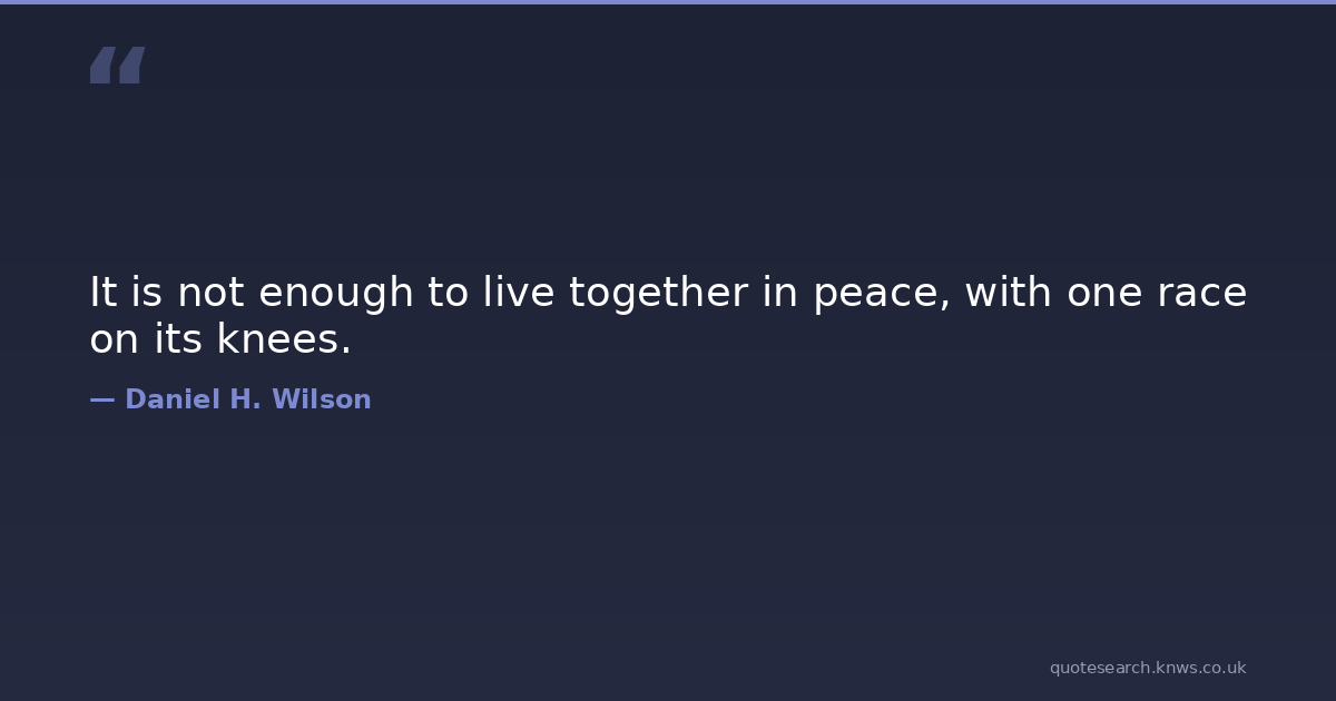 It is not enough to live together in peace, with one race on its knees.