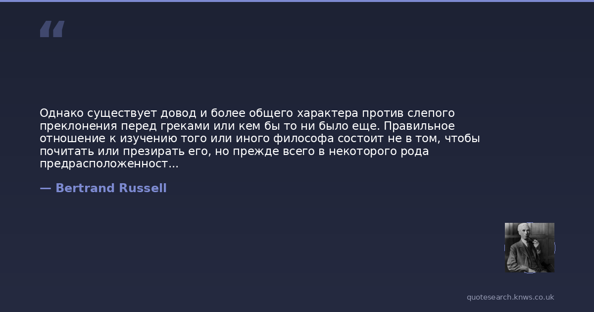 Однако существует довод и более общего характера против слепого преклонения перед греками или кем бы то ни было еще. Правильное отношение к изучению того или иного философа состоит не в том, чтобы почитать или презирать его, но прежде всего в некоторого рода предрасположенности, дающей возможность понять, что именно склоняет к тому, чтобы верить в его теории, и только потом следует оживлять критическое отношение, которое должно напоминать, насколько это возможно, состояние ума той личности, которая отбрасывает мнения, отстаиваемые ею прежде. Презрение мешает первой части этого процесса, преклонение – второй. Следует при этом учитывать две вещи: надо помнить, что человек, чьи взгляды и теории заслуживают изучения, должен, по-видимому, обладать определенным умом, но надо также иметь в виду, что ни один человек не достигал, вероятно, полной и окончательной истины по какому бы то ни было вопросу. Когда умный человек выражает совершенно абсурдный с нашей точки зрения взгляд, мы не должны пытаться доказывать, что этот взгляд тем не менее является правильным, но нам следует попытаться понять, каким образом этот взгляд когда-то казался правильным. Это упражнение исторического и психологического воображения одновременно и расширяет сферу нашего мышления, и помогает нам понять, насколько глупыми многие из лелеемых нами предрассудков покажутся веку, обладающему другим складом ума.