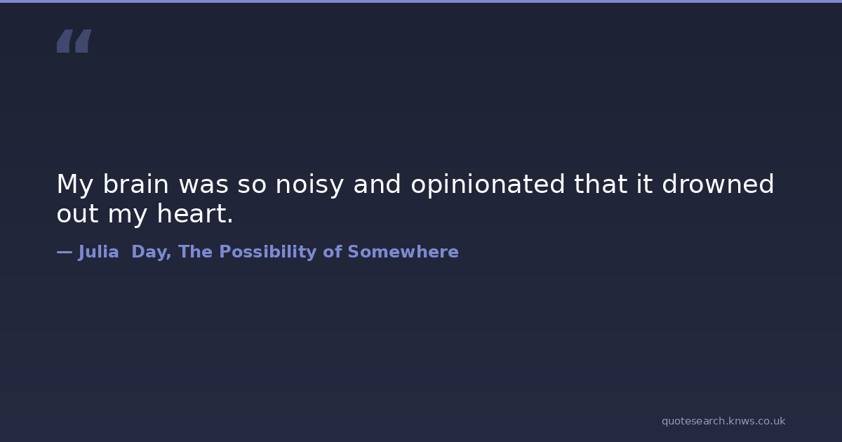My brain was so noisy and opinionated that it drowned out my heart. heart life love romance teen-love young-love Download Image Share on X Share on Facebook Copy Link
