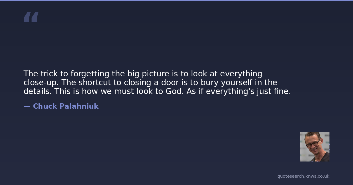 The trick to forgetting the big picture is to look at everything close-up. The shortcut to closing a door is to bury yourself in the details. This is how we must look to God. As if everything's just fine.