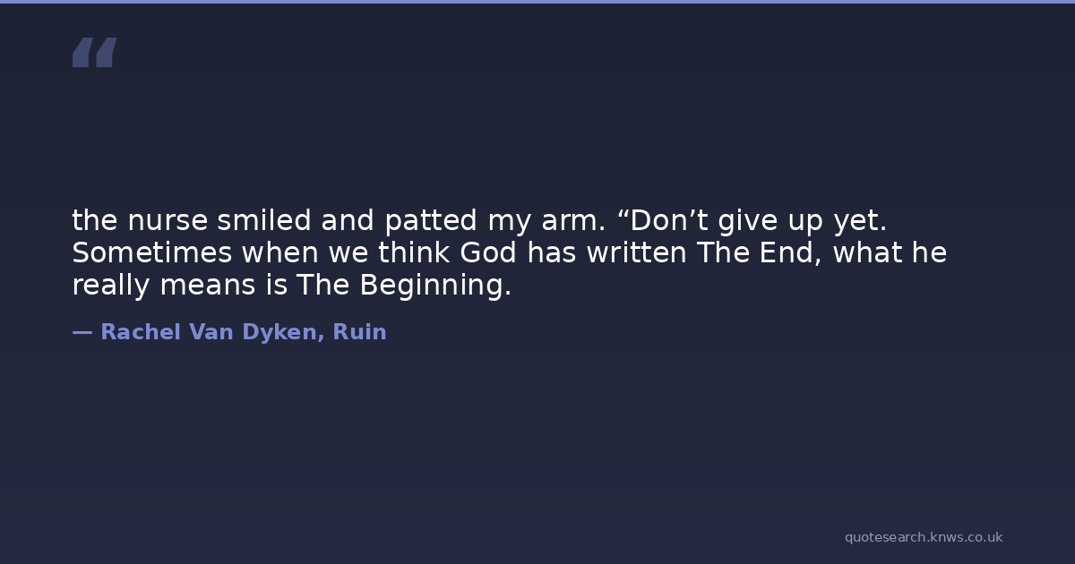 the nurse smiled and patted my arm. “Don’t give up yet. Sometimes when we think God has written The End, what he really means is The Beginning.