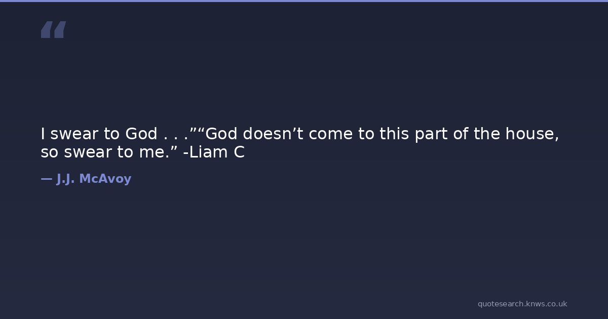 I swear to God . . .”“God doesn’t come to this part of the house, so swear to me.” -Liam C