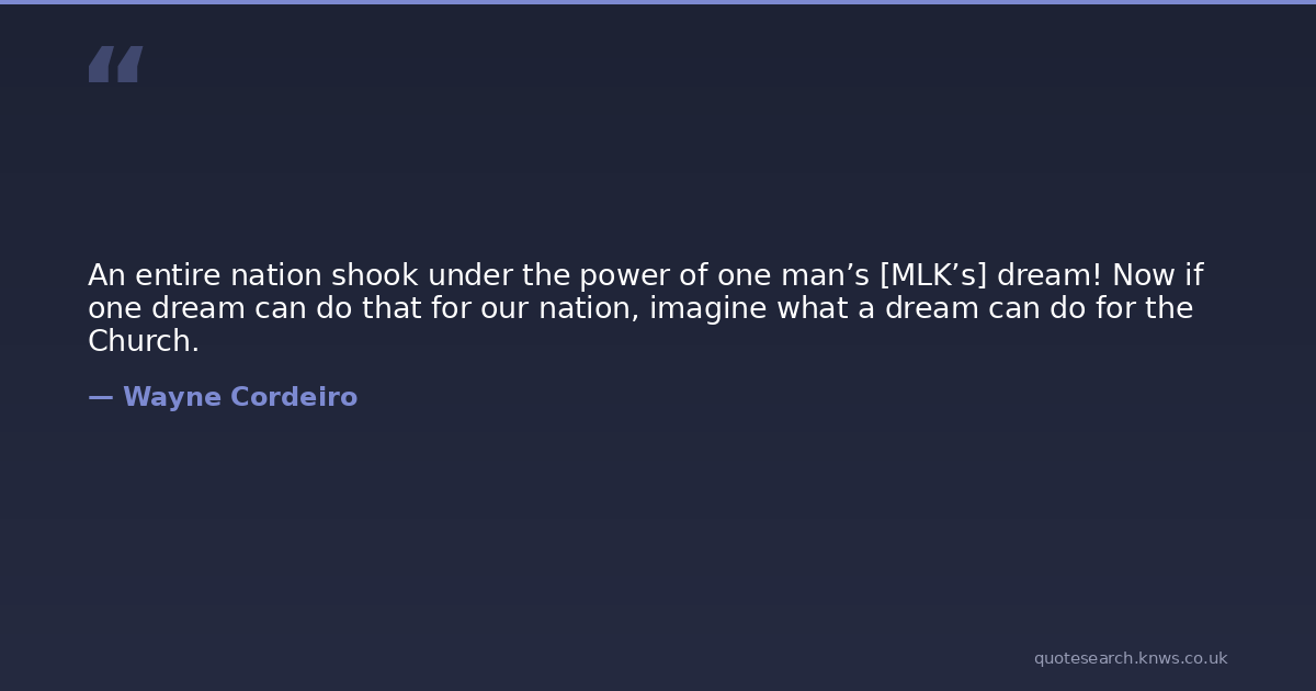 An entire nation shook under the power of one man’s [MLK’s] dream! Now if one dream can do that for our nation, imagine what a dream can do for the Church.