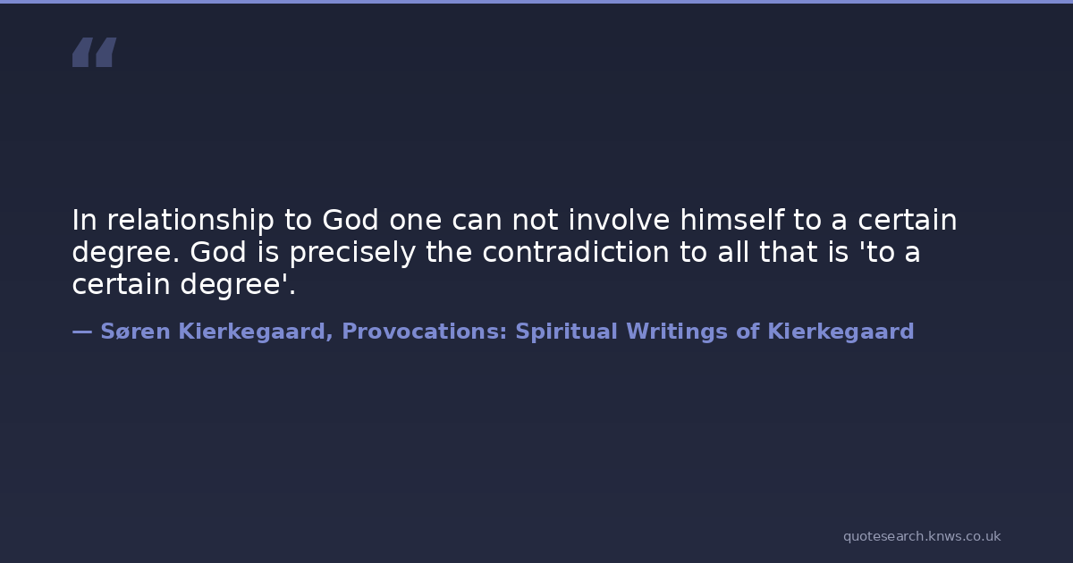 In relationship to God one can not involve himself to a certain degree. God is precisely the contradiction to all that is 'to a certain degree'.