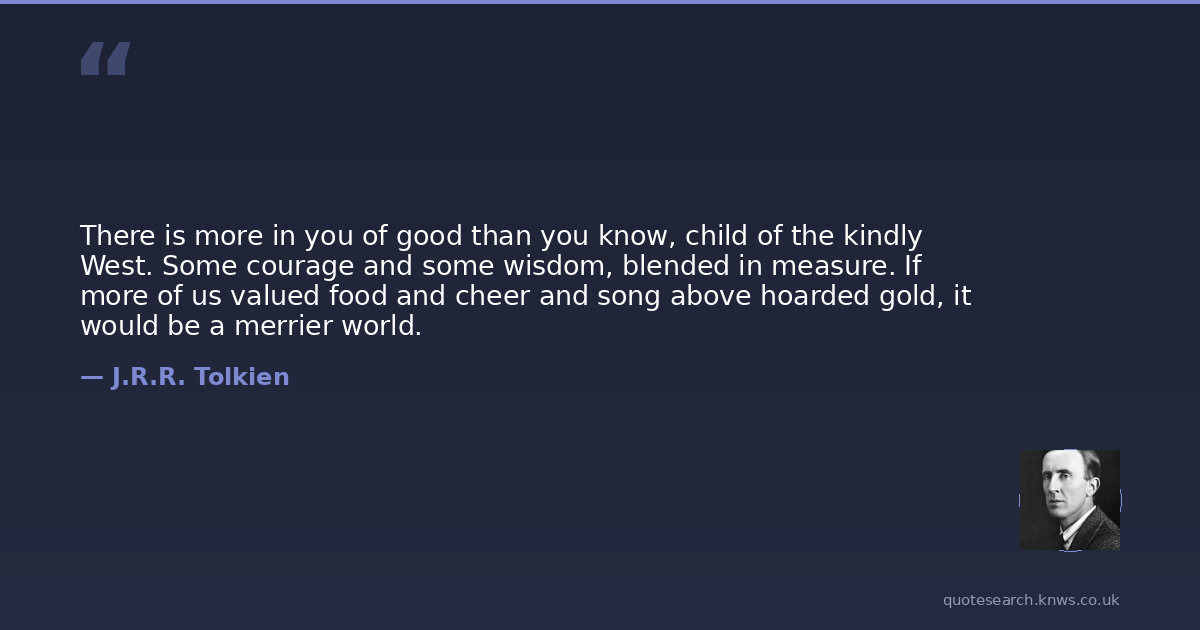 There is more in you of good than you know, child of the kindly West. Some courage and some wisdom, blended in measure. If more of us valued food and cheer and song above hoarded gold, it would be a merrier world.