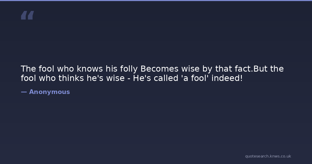 The fool who knows his folly Becomes wise by that fact.But the fool who thinks he's wise - He's called 'a fool' indeed!