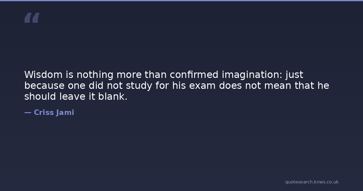 Wisdom is nothing more than confirmed imagination: just because one did not study for his exam does not mean that he should leave it blank.