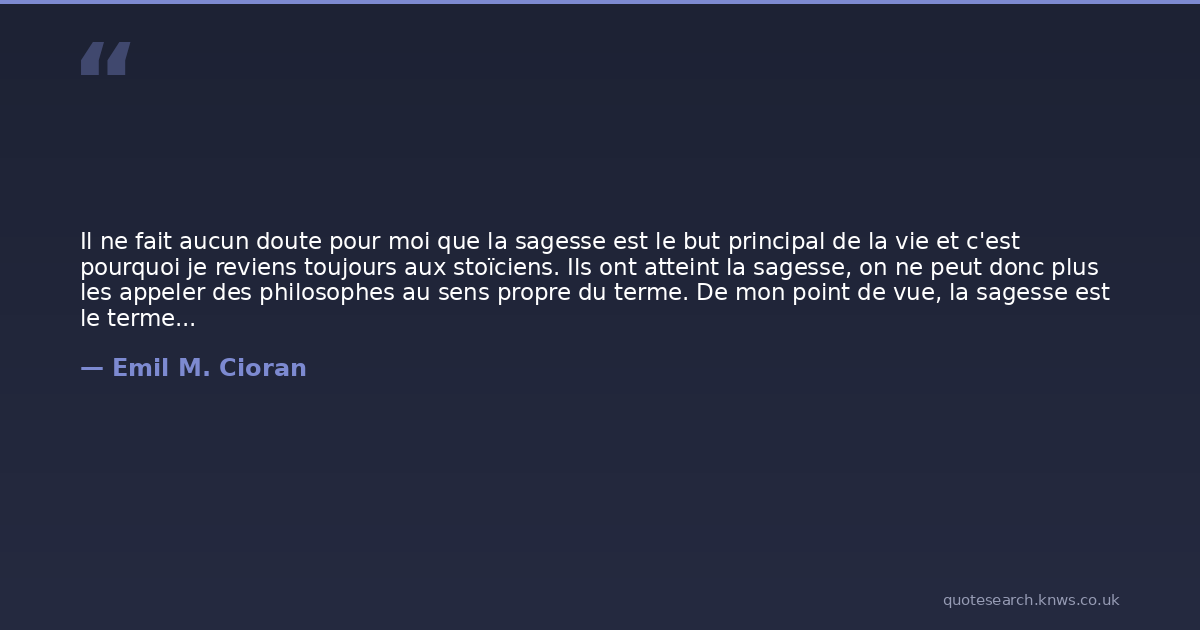 Il ne fait aucun doute pour moi que la sagesse est le but principal de la vie et c'est pourquoi je reviens toujours aux stoïciens. Ils ont atteint la sagesse, on ne peut donc plus les appeler des philosophes au sens propre du terme. De mon point de vue, la sagesse est le terme naturel de la philosophie, sa fin dans les deux sens du mot. Une philosophie finit en sagesse et par là même disparaît.