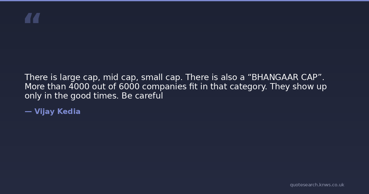 There is large cap, mid cap, small cap. There is also a “BHANGAAR CAP”. More than 4000 out of 6000 companies fit in that category. They show up only in the good times. Be careful