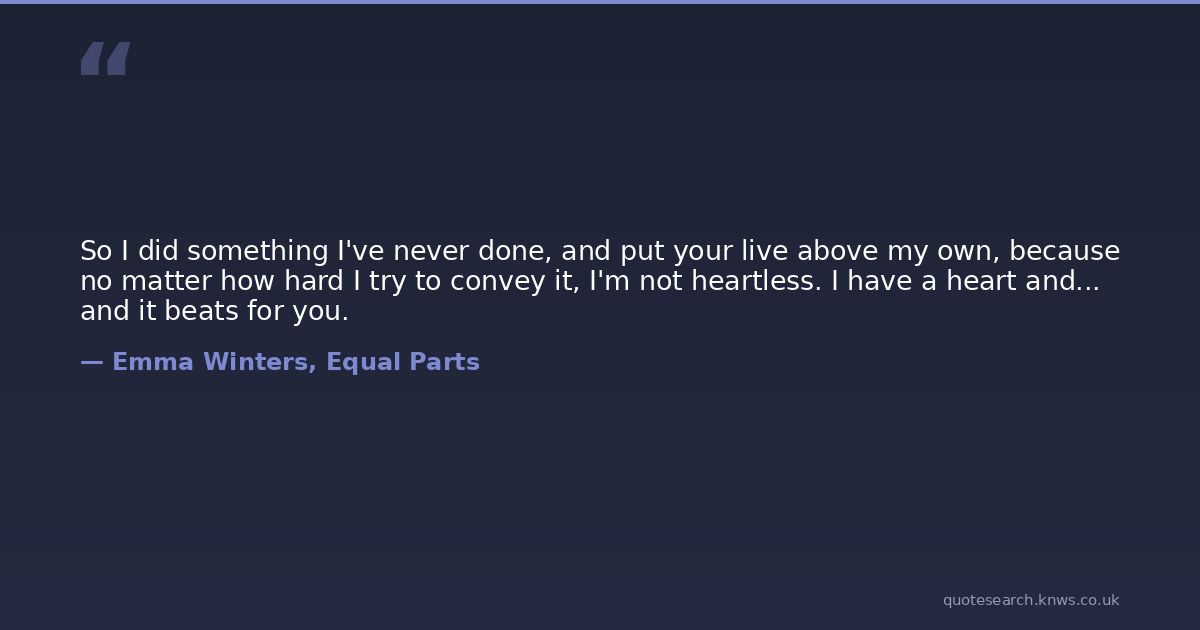 So I did something I've never done, and put your live above my own, because no matter how hard I try to convey it, I'm not heartless. I have a heart and... and it beats for you.