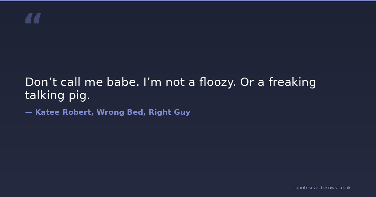 Don’t call me babe. I’m not a floozy. Or a freaking talking pig. humor romance Download Image Share on X Share on Facebook Copy Link