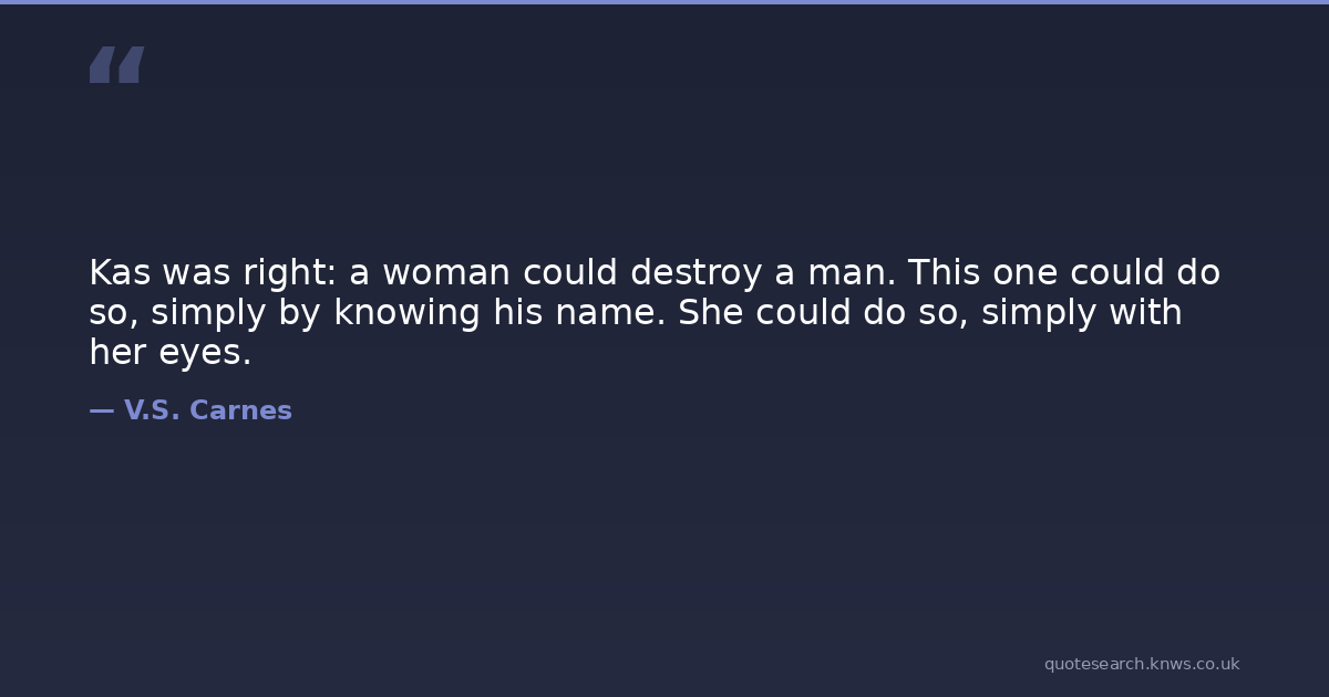 Kas was right: a woman could destroy a man. This one could do so, simply by knowing his name. She could do so, simply with her eyes.