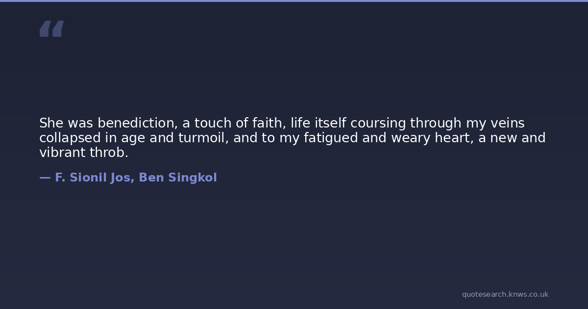 She was benediction, a touch of faith, life itself coursing through my veins collapsed in age and turmoil, and to my fatigued and weary heart, a new and vibrant throb.