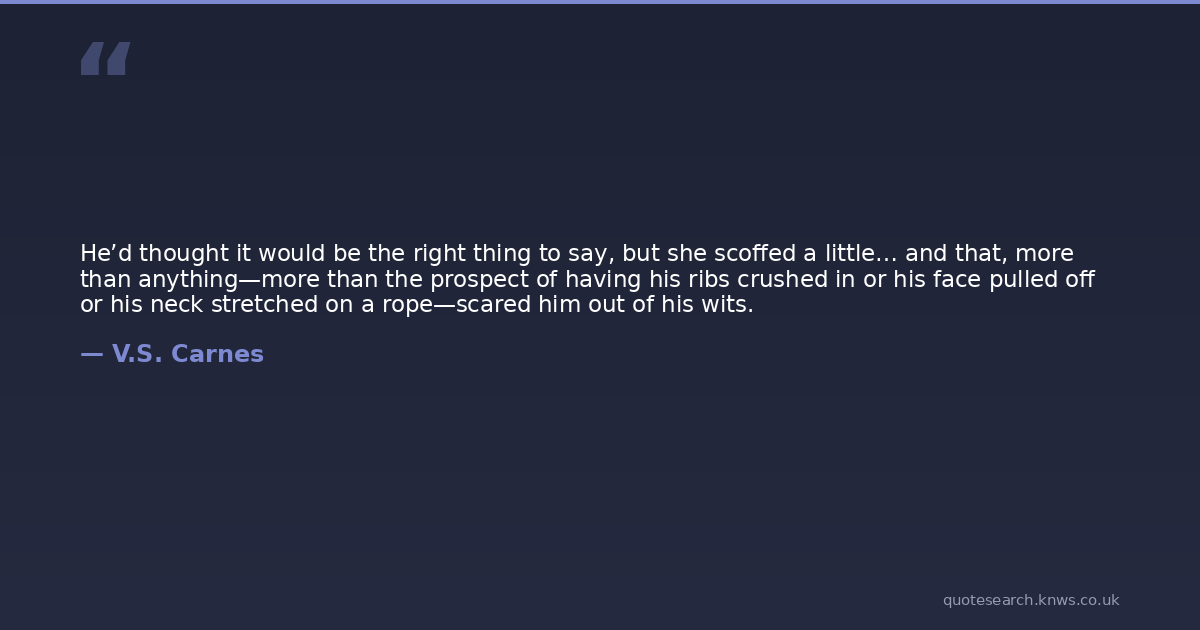 He’d thought it would be the right thing to say, but she scoffed a little… and that, more than anything—more than the prospect of having his ribs crushed in or his face pulled off or his neck stretched on a rope—scared him out of his wits.