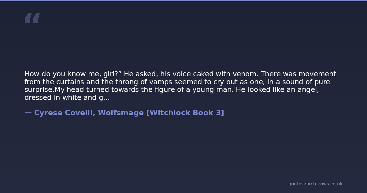 How do you know me, girl?” He asked, his voice caked with venom. There was movement from the curtains and the throng of vamps seemed to cry out as one, in a sound of pure surprise.My head turned towards the figure of a young man. He looked like an angel, dressed in white and gold, but whether that was because he caused Petrel to stop or the flickering candlelight from the sconces above us, I couldn’t say.