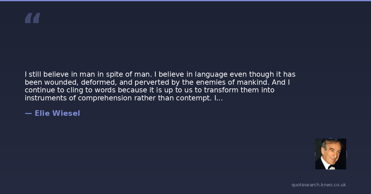 I still believe in man in spite of man. I believe in language even though it has been wounded, deformed, and perverted by the enemies of mankind. And I continue to cling to words because it is up to us to transform them into instruments of comprehension rather than contempt. It is up to us to choose whether we wish to use them to curse or to heal, to wound or to console.