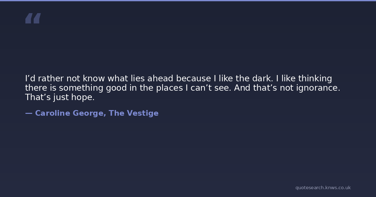 I’d rather not know what lies ahead because I like the dark. I like thinking there is something good in the places I can’t see. And that’s not ignorance. That’s just hope.