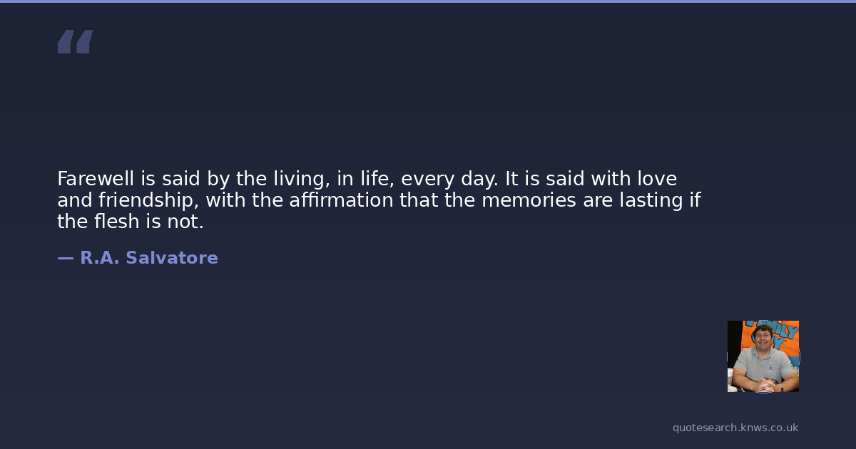 Farewell is said by the living, in life, every day. It is said with love and friendship, with the affirmation that the memories are lasting if the flesh is not.