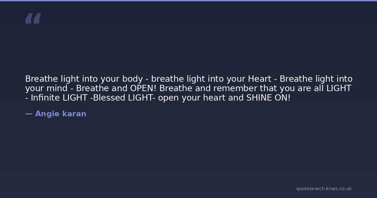 Breathe light into your body - breathe light into your Heart - Breathe light into your mind - Breathe and OPEN! Breathe and remember that you are all LIGHT - Infinite LIGHT -Blessed LIGHT- open your heart and SHINE ON!