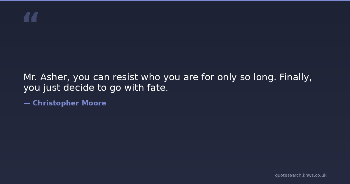 Mr. Asher, you can resist who you are for only so long. Finally, you just decide to go with fate.