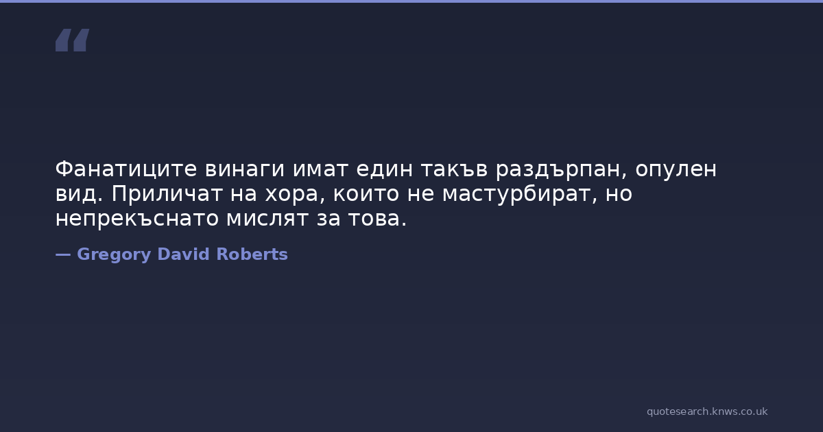 Фанатиците винаги имат един такъв раздърпан, опулен вид. Приличат на хора, които не мастурбират, но непрекъснато мислят за това.