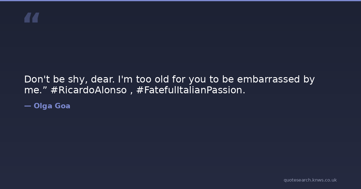 Don't be shy, dear. I'm too old for you to be embarrassed by me.” #RicardoAlonso , #FatefulItalianPassion.