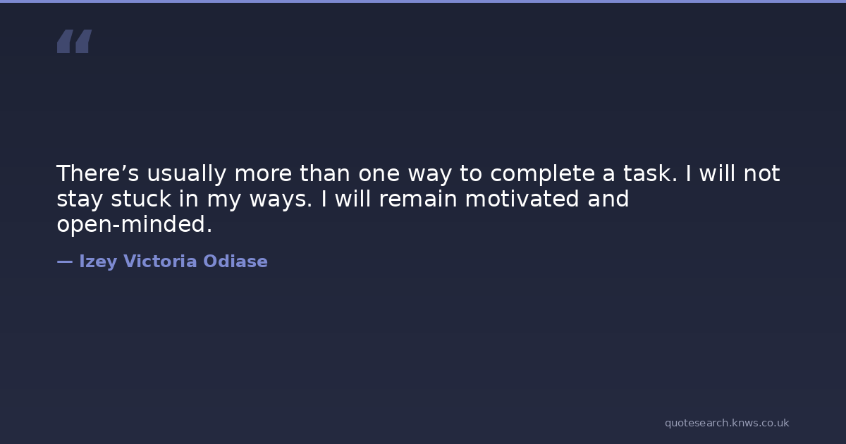 There’s usually more than one way to complete a task. I will not stay stuck in my ways. I will remain motivated and open-minded.