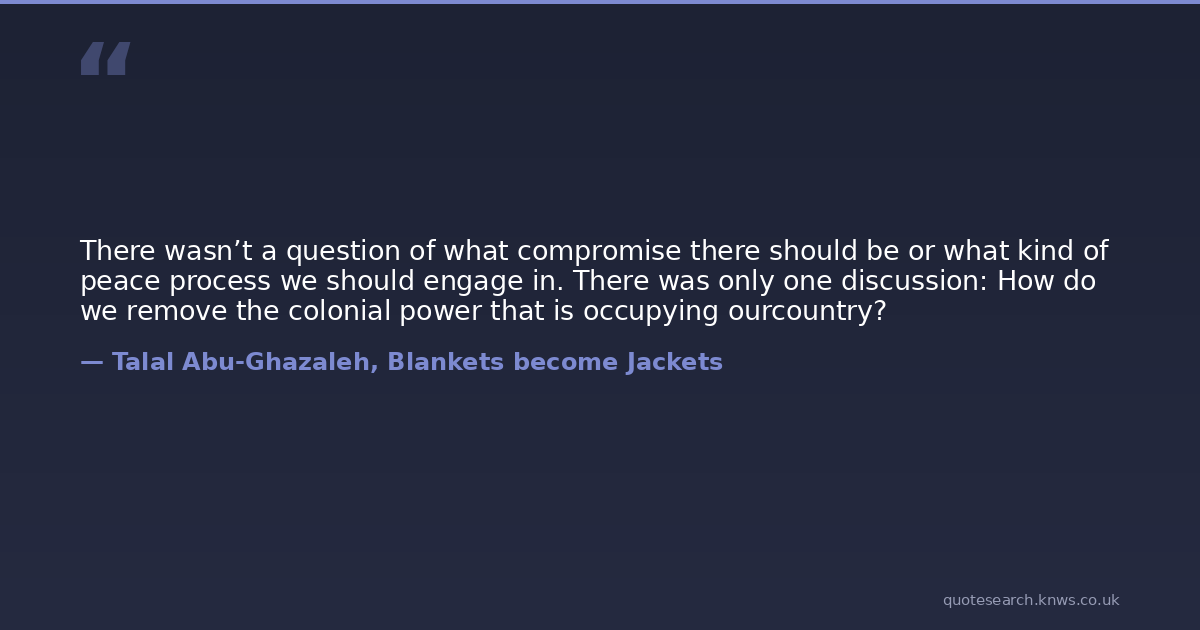 There wasn’t a question of what compromise there should be or what kind of peace process we should engage in. There was only one discussion: How do we remove the colonial power that is occupying ourcountry?