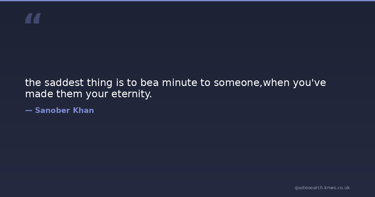 the saddest thing is to bea minute to someone,when you've made them your eternity. eternity heartbreak indian-authors love-quotes loving loving-someone minutes pain poetry poetry-quotes sad-quotes sadness unrequited-love Download Image Share on X Share on Facebook Copy Link