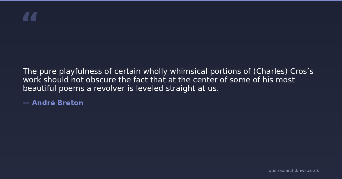 The pure playfulness of certain wholly whimsical portions of (Charles) Cros’s work should not obscure the fact that at the center of some of his most beautiful poems a revolver is leveled straight at us.