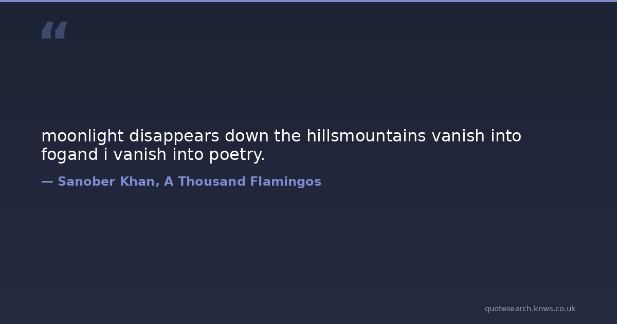 moonlight disappears down the hillsmountains vanish into fogand i vanish into poetry. alone fog hills moonlight mountains poems poetry poetry-quotes solitude vanish Download Image Share on X Share on Facebook Copy Link