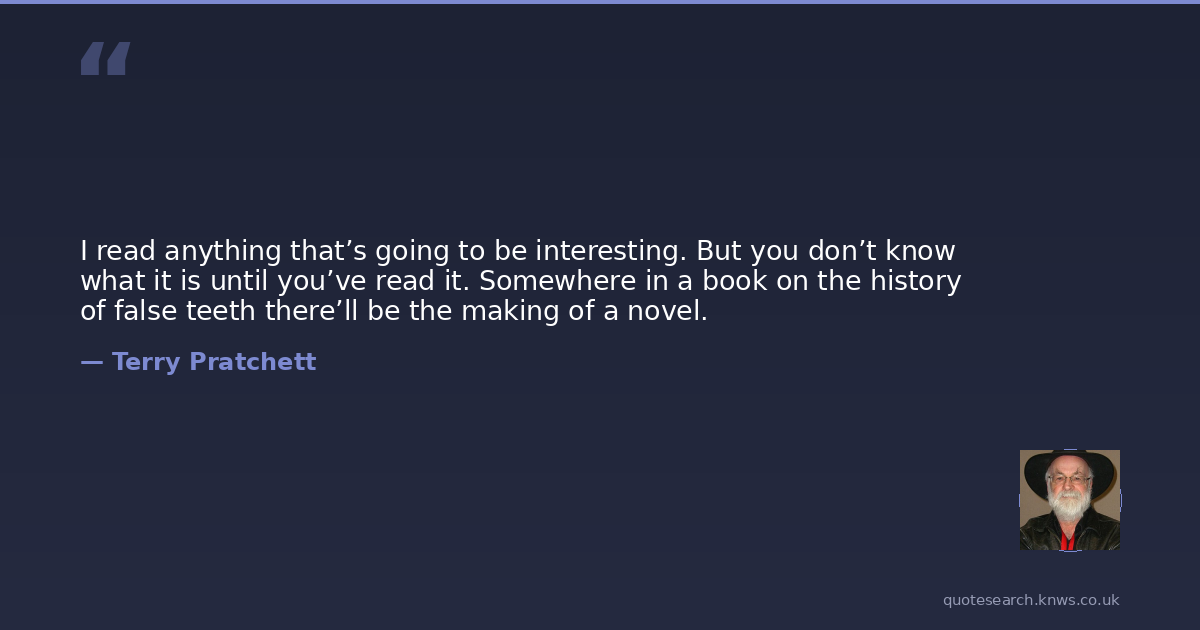 I read anything that’s going to be interesting. But you don’t know what it is until you’ve read it. Somewhere in a book on the history of false teeth there’ll be the making of a novel.