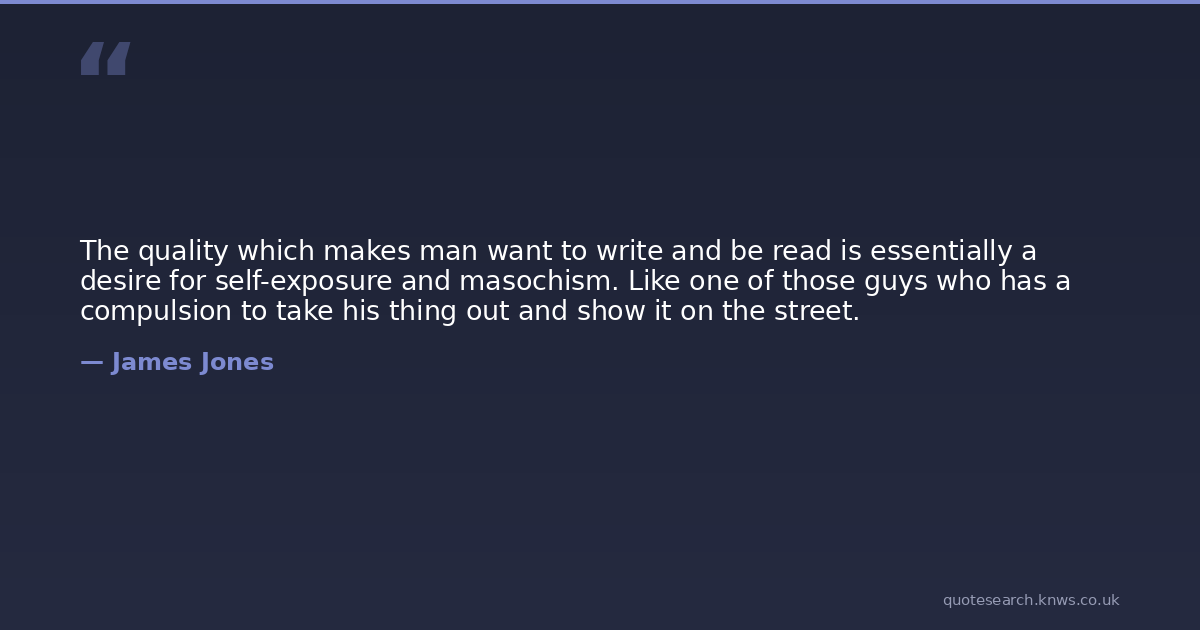 The quality which makes man want to write and be read is essentially a desire for self-exposure and masochism. Like one of those guys who has a compulsion to take his thing out and show it on the street.