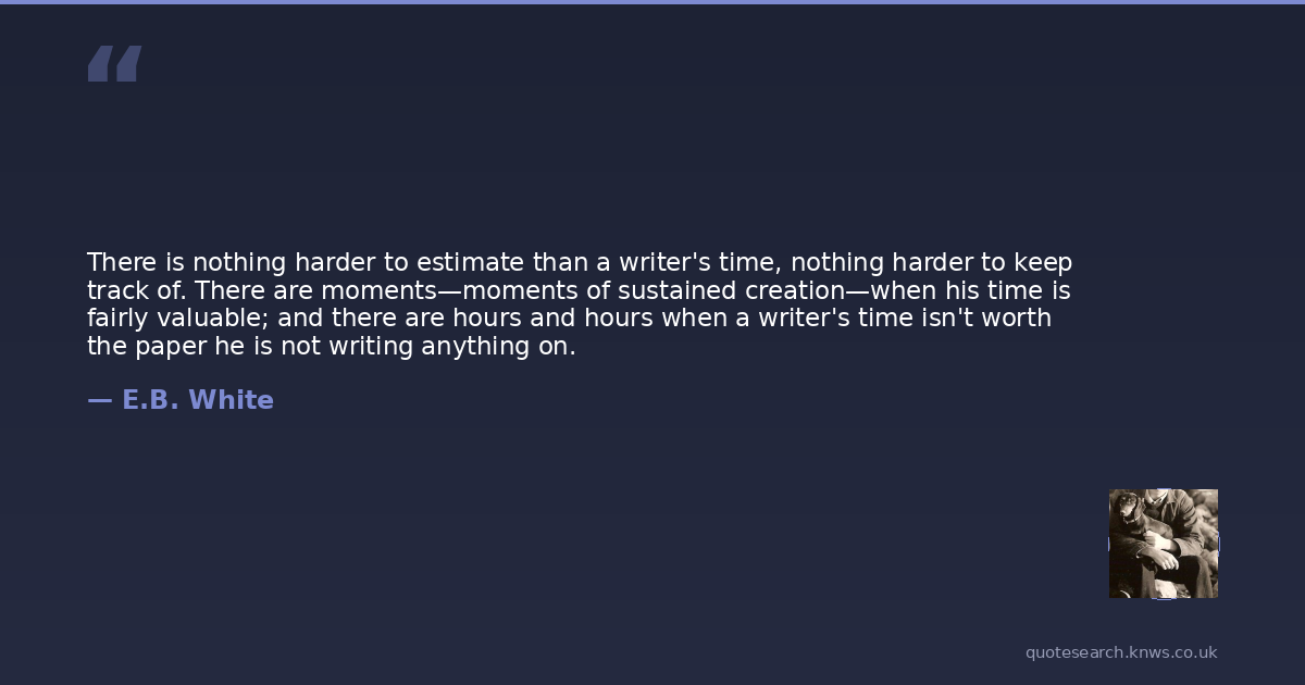 There is nothing harder to estimate than a writer's time, nothing harder to keep track of. There are moments—moments of sustained creation—when his time is fairly valuable; and there are hours and hours when a writer's time isn't worth the paper he is not writing anything on.