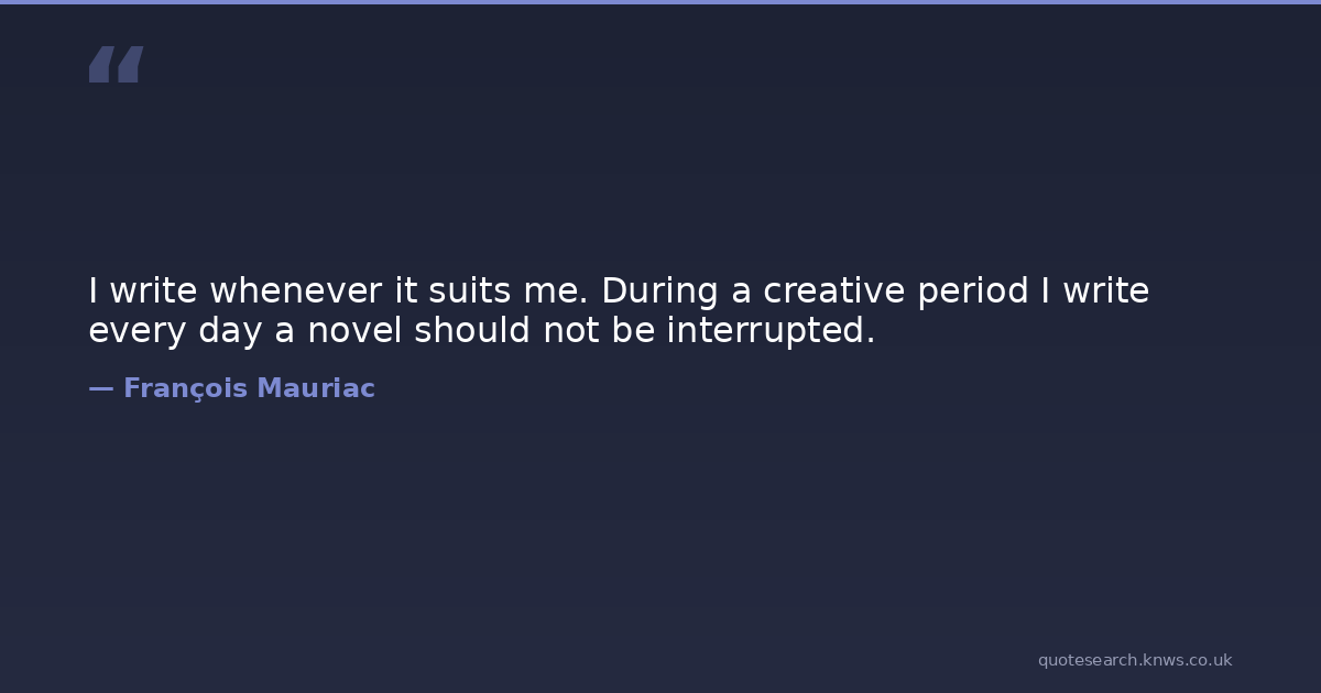I write whenever it suits me. During a creative period I write every day a novel should not be interrupted.