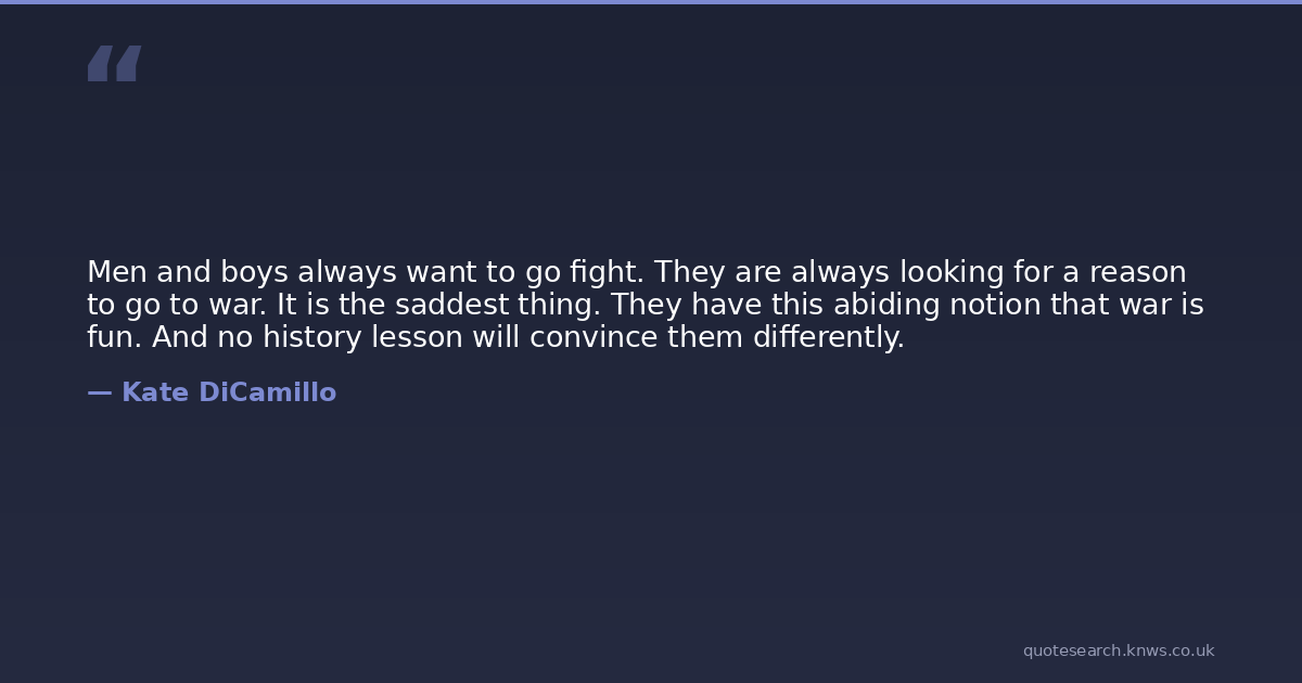 Men and boys always want to go fight. They are always looking for a reason to go to war. It is the saddest thing. They have this abiding notion that war is fun. And no history lesson will convince them differently.