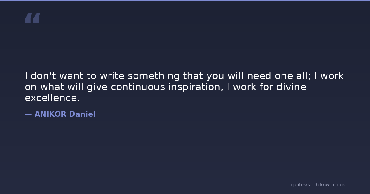 I don’t want to write something that you will need one all; I work on what will give continuous inspiration, I work for divine excellence.