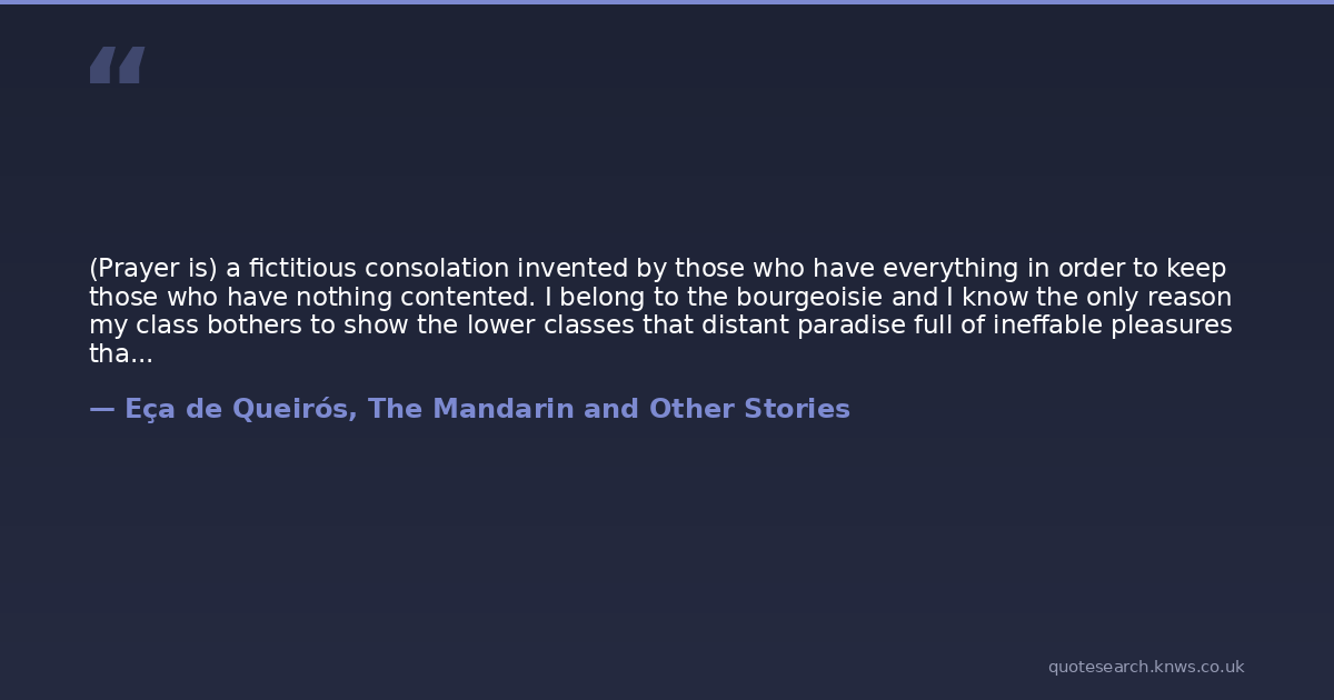 (Prayer is) a fictitious consolation invented by those who have everything in order to keep those who have nothing contented. I belong to the bourgeoisie and I know the only reason my class bothers to show the lower classes that distant paradise full of ineffable pleasures that will one day be theirs is to divert attention from their own bulging coffers and from the abundance of their harvests.