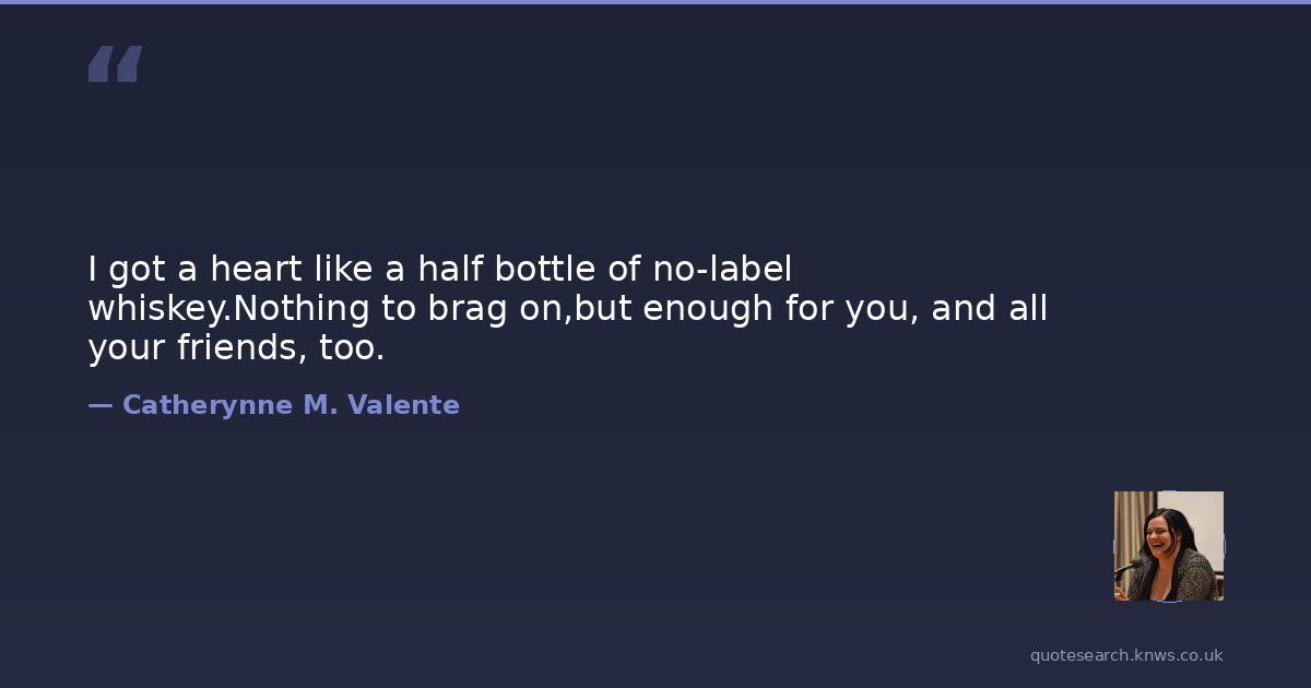 I got a heart like a half bottle of no-label whiskey.Nothing to brag on,but enough for you, and all your friends, too.