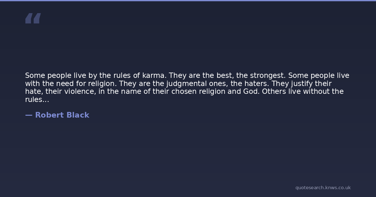 Some people live by the rules of karma. They are the best, the strongest. Some people live with the need for religion. They are the judgmental ones, the haters. They justify their hate, their violence, in the name of their chosen religion and God. Others live without the rules of karma, and without religion, just as animals do.